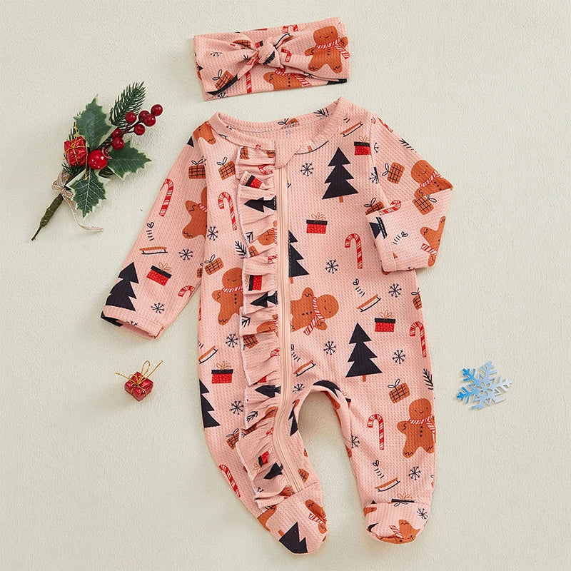 Pyjama Bébé Magie d’Hiver – Ensemble Chaud et Festif avec Bonnet ou Bandeau, Confort Doux pour les Fêtes