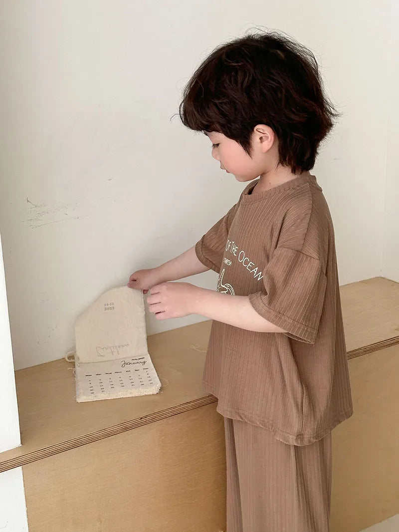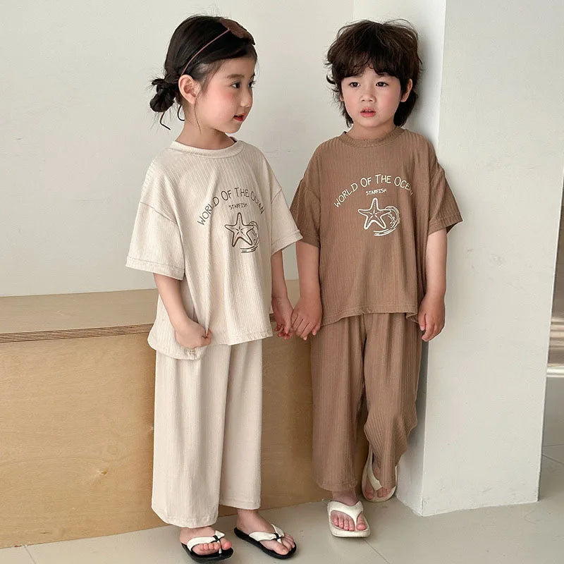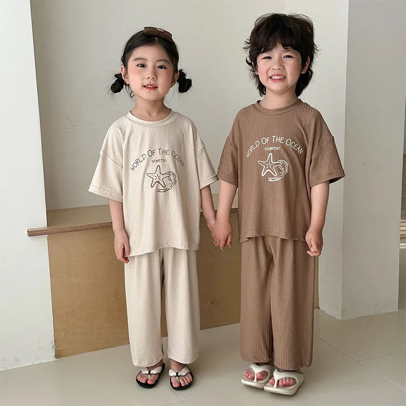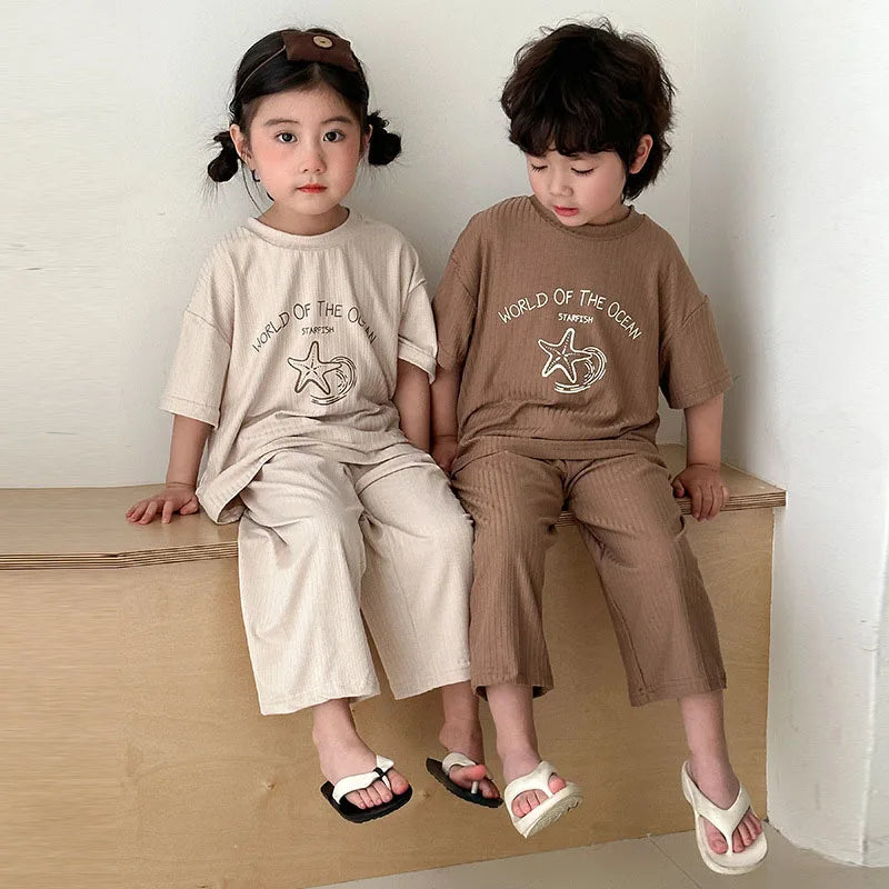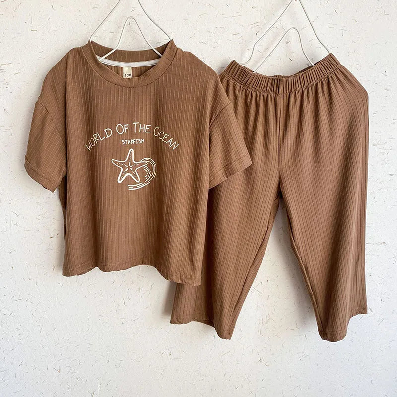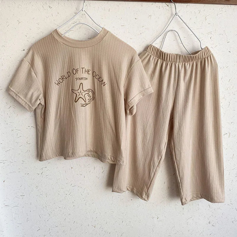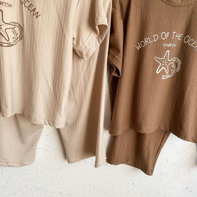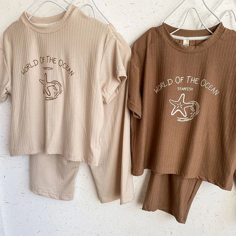 Pyjama Enfant Été “World of the Ocean” – Ensemble 2 Pièces en Coton Léger, Manches Courtes, Mixte